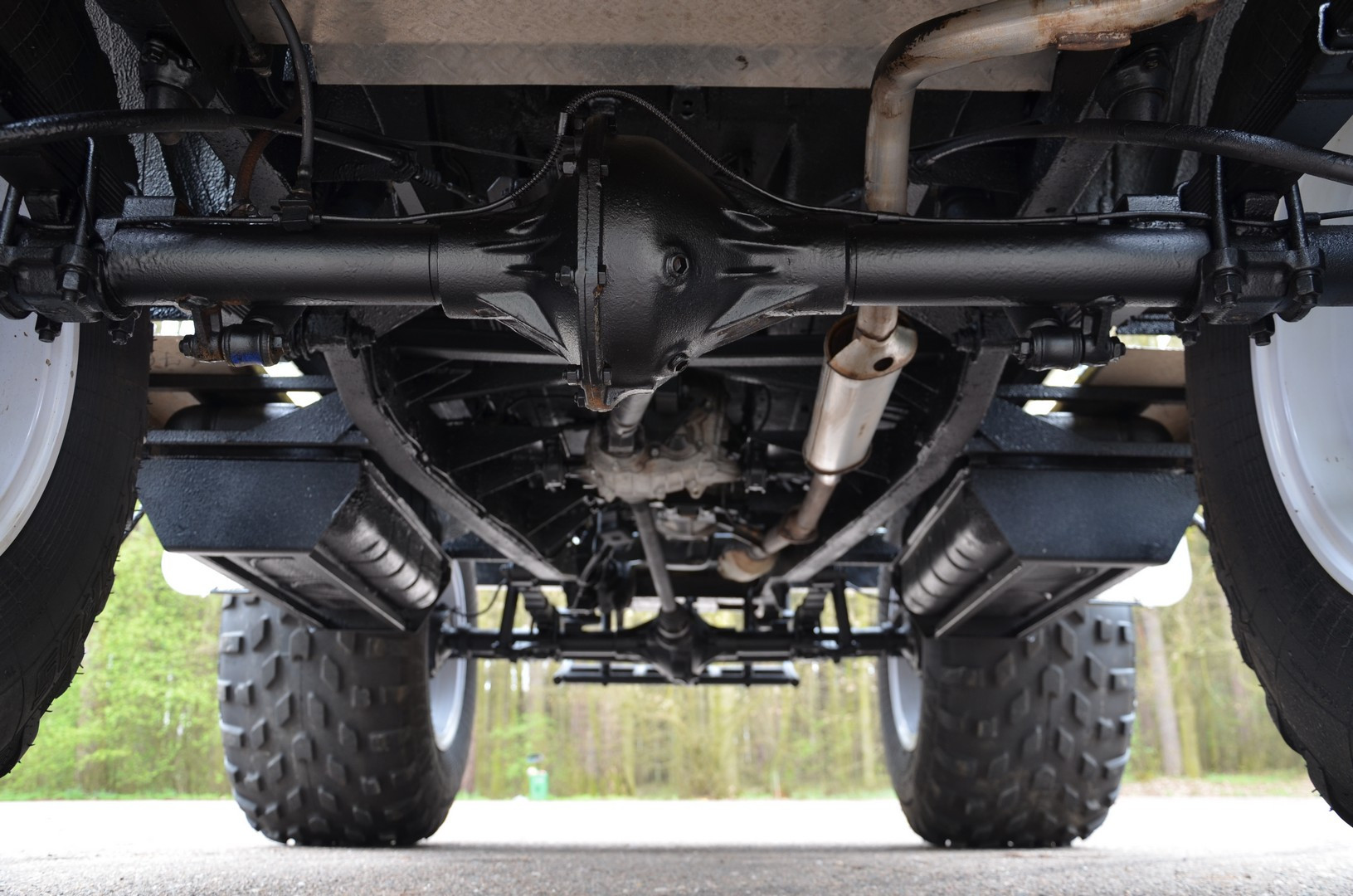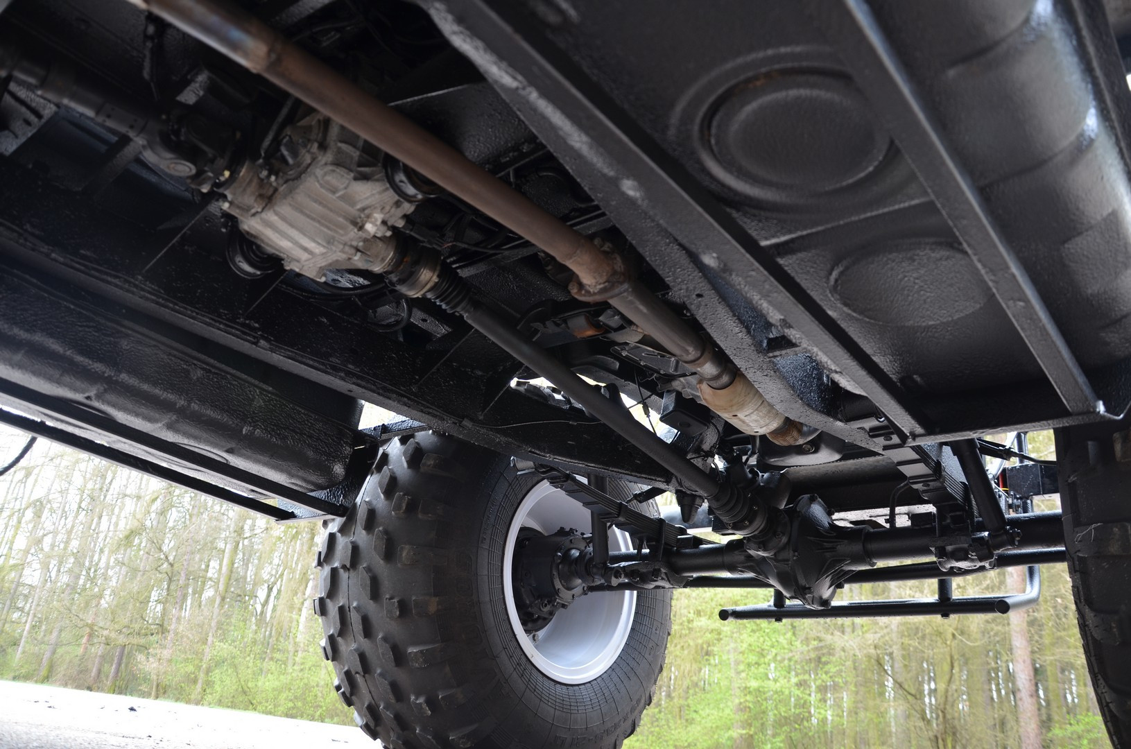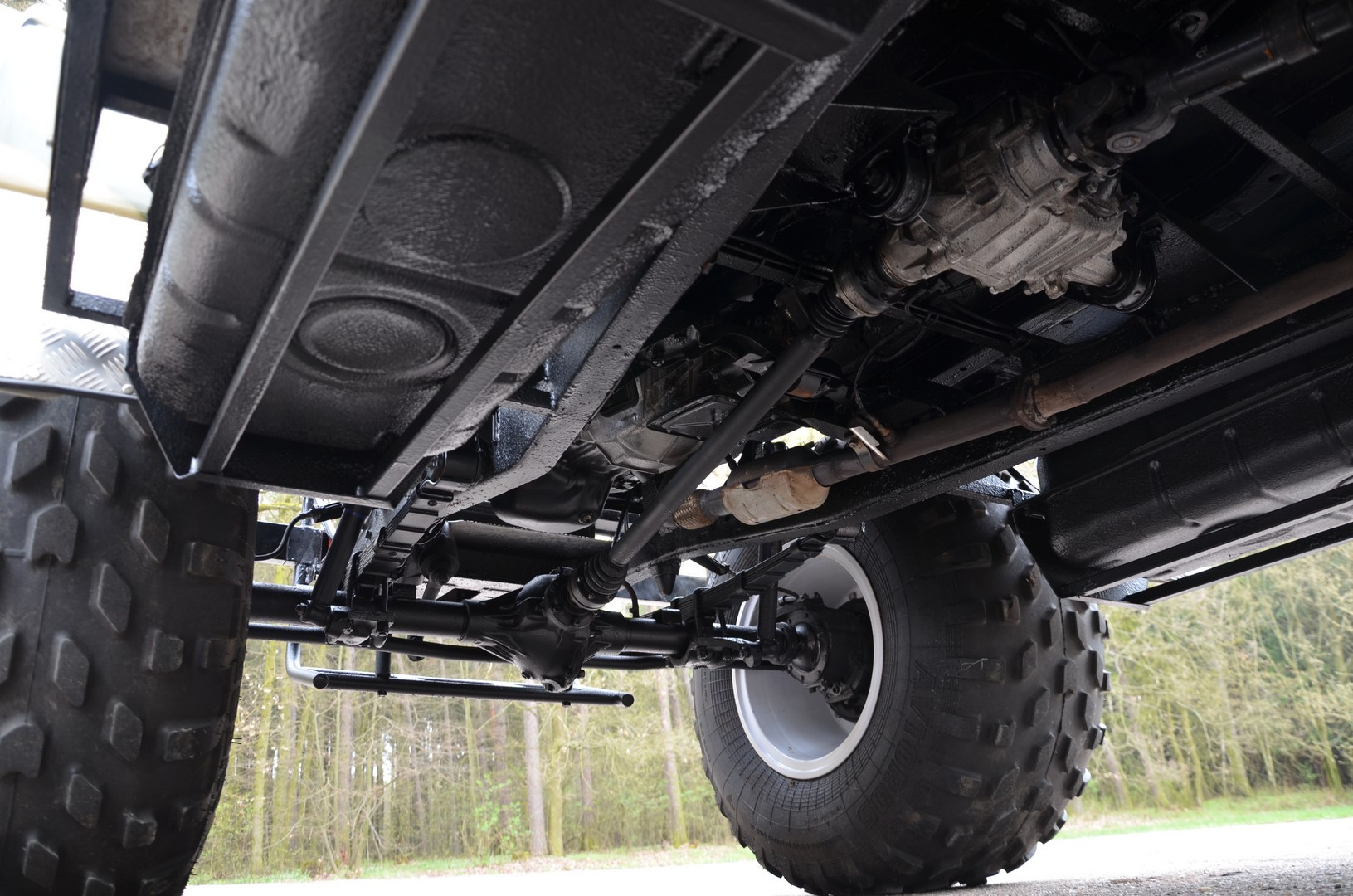 Automobil je posazen na odolném vojenském rámovém podvozku typu UAZ a je kompletně odpružen listovými péry. Obě robustní nápravy jsou tuhé, opatřené reduktory, jež jsou instalovány přímo v kolech, čímž je zajištěna maximální průchodnost jakýmkoliv terénem. Speciální nízkotlaké pneumatiky umožní jízdu po vodní hladině, přes vegetaci bez jejího poškození, až po sněžné či písčité pláně. Velkou výhodou je také jeho bezkonkurenční světlá výška a celková variabilita.