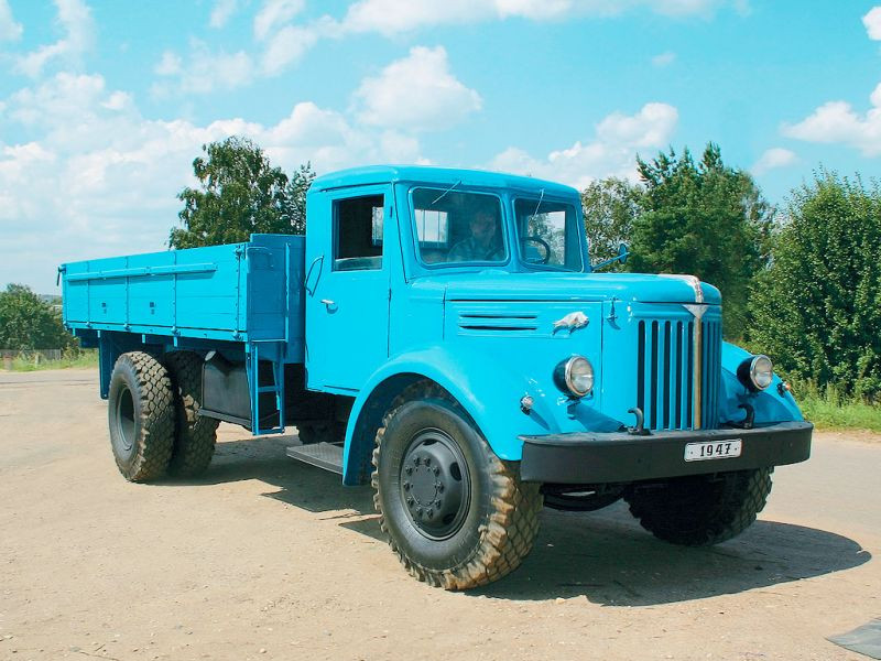 Prototypy byly vyrobeny v letech 1944-45 v Jaroslavském automobilovém závodě. První vozy měly na kapotě znak medvěda, později znak zubra na bočním krytu motorového prostoru. Vzhled MAZu je inspirován americkými vozy, které jezdily za války v Sovětském svazu, konkrétně typem GMC 803.