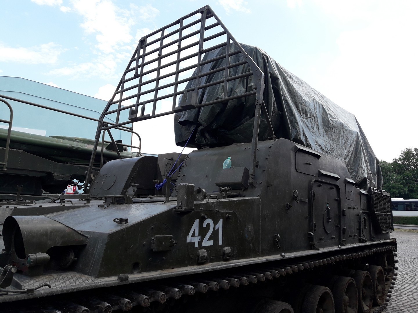 V zadní části vozidla bylo anténní stanoviště s otočnou anténou. Nad sebou byly umístěny tři antény, horní byla pro navedení rakety. Byl zde také televizní optický zaměřovač.