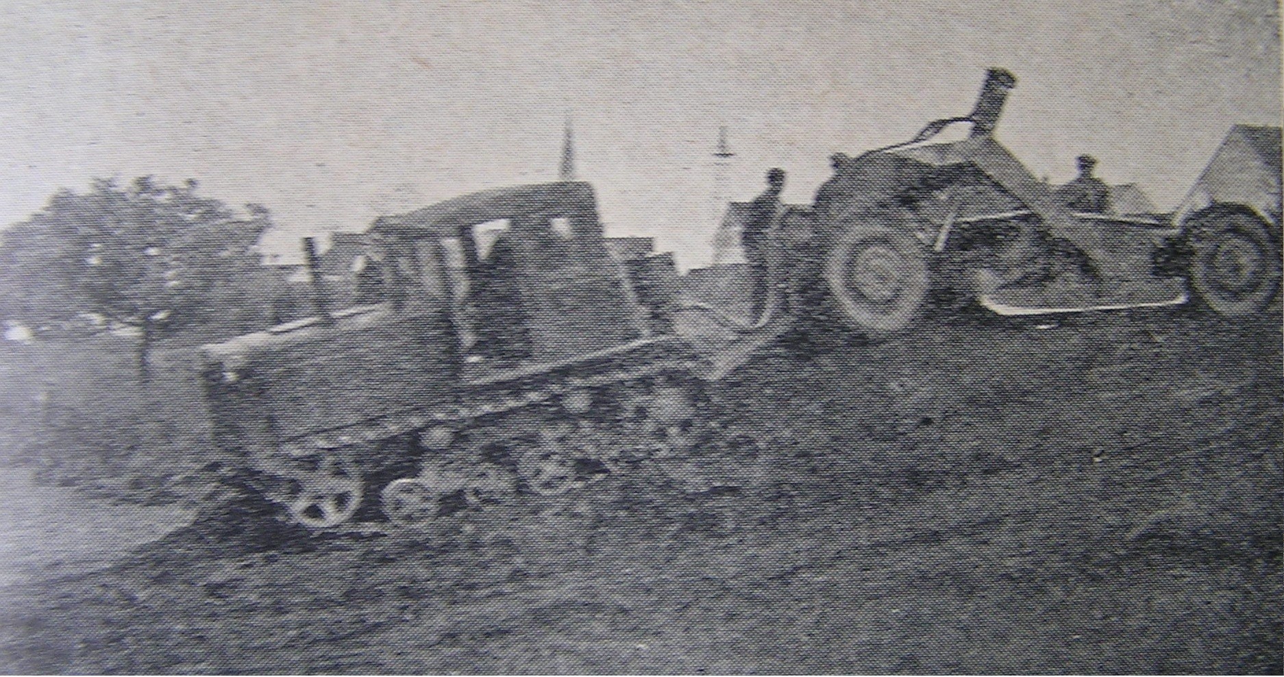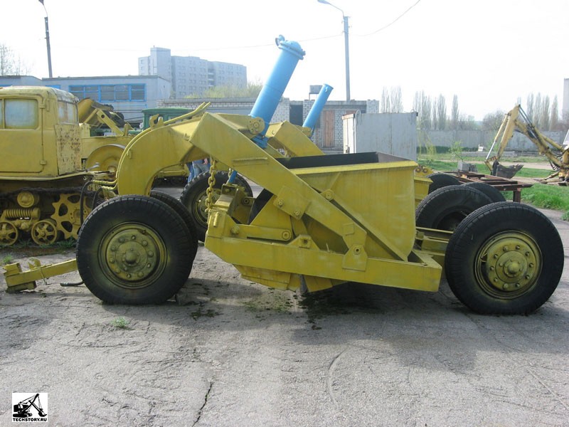Dvouosý scraper. Pro provádění hloubení silážních jam, ale také pro činnosti ve stavebnictví, určen pro tažení pásovým traktorem.