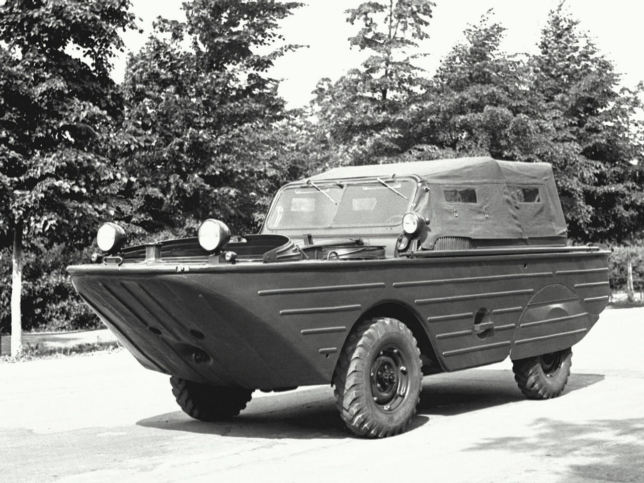 Motor vozu byl původně od známé Pobědy GAZ M-20. Z GAZu-69 byla použita převodovka a nápravy. Pneumatiky byly vyvinuty pro obojživelný vůz speciální. Výroba probíhala do roku 1958, kdy se přesouvala výroba GAZu-69 do Uljanovska. V UAZu však neměli vybavení na výrobu tohoto obojživelného vozu, který nebyl zároveň potřeba ve větším množství, proto bla jeho výroba v té době ukončena.
