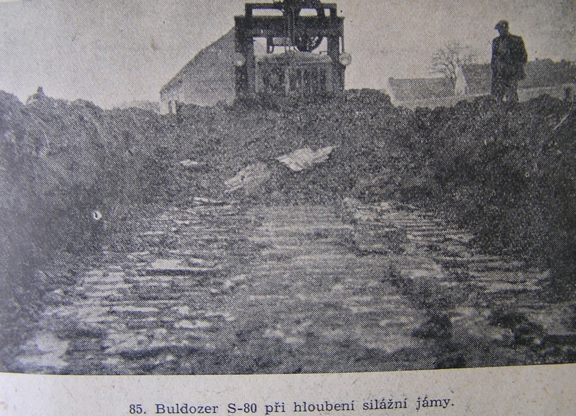 Buldozer S-80 se skládá z pásového traktoru S-80, který má vpředu radlici šířky 3 m a zařízení k ovládání radlice. Radlice je nesena rámem, jehož boční nosníky svírají s radlicí pravý úhel. Dvě boční ramena rámu se otáčejí kolem čepů umístěných na pásovém podvozku traktoru. Přední příčná část rámu nese radlici.